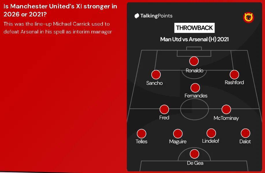 达洛的另一资本,是他参与了卡里克第一次执教曼联时3-2击败阿森纳的比赛。当时的首发阵容里,只有达洛和布鲁诺·费尔南德斯、马奎尔还在阵中。曼联与曼城的比赛,卡里克就启用了32岁老将马奎尔,而非此前更多出场的年轻小将埃登·海文,又或者昂贵的天才莱尼·约罗。